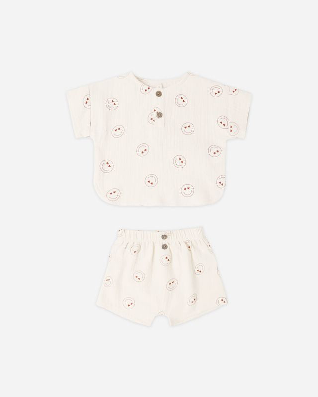 WOVEN BOXY TOP + SHORT SET HEART EYES