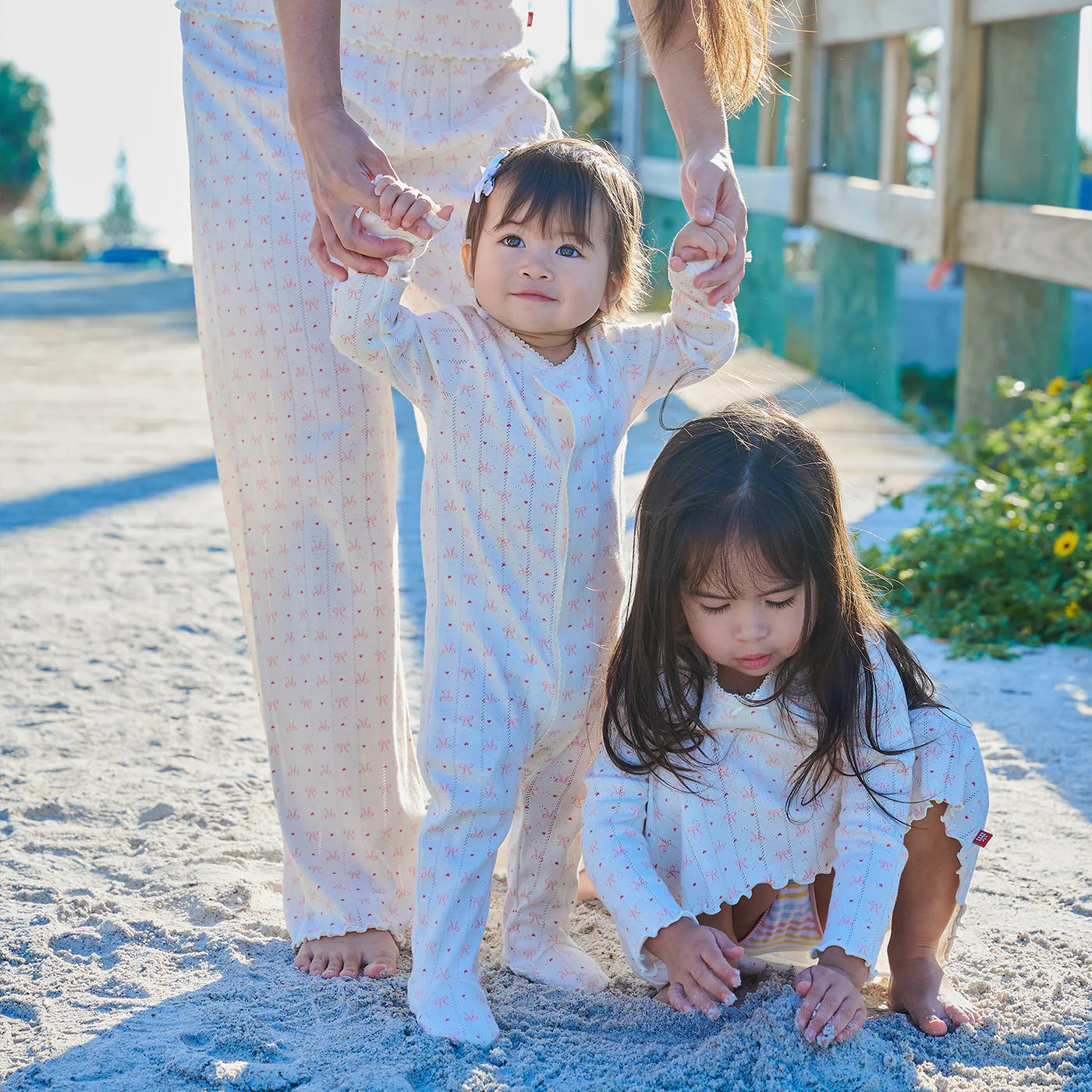 Heart & Bow Pointelle Magnetic Footie