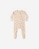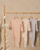 Full double-zip footie crafted from our soft and stretchy bamboo fabric. Fold-over hand mitts included on sizes NB – 3-6M. Raised screen print on soles of size 6-12M for added traction.