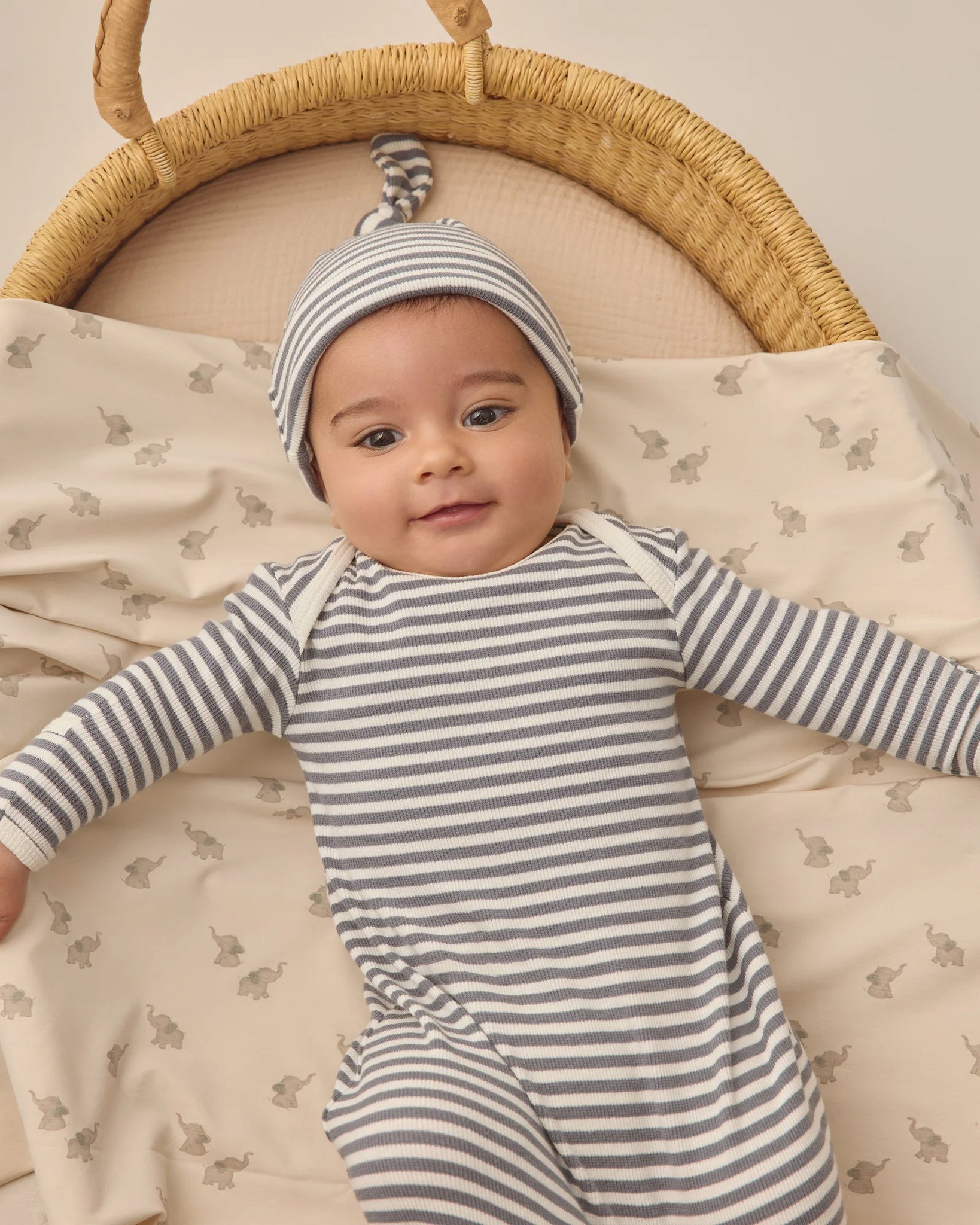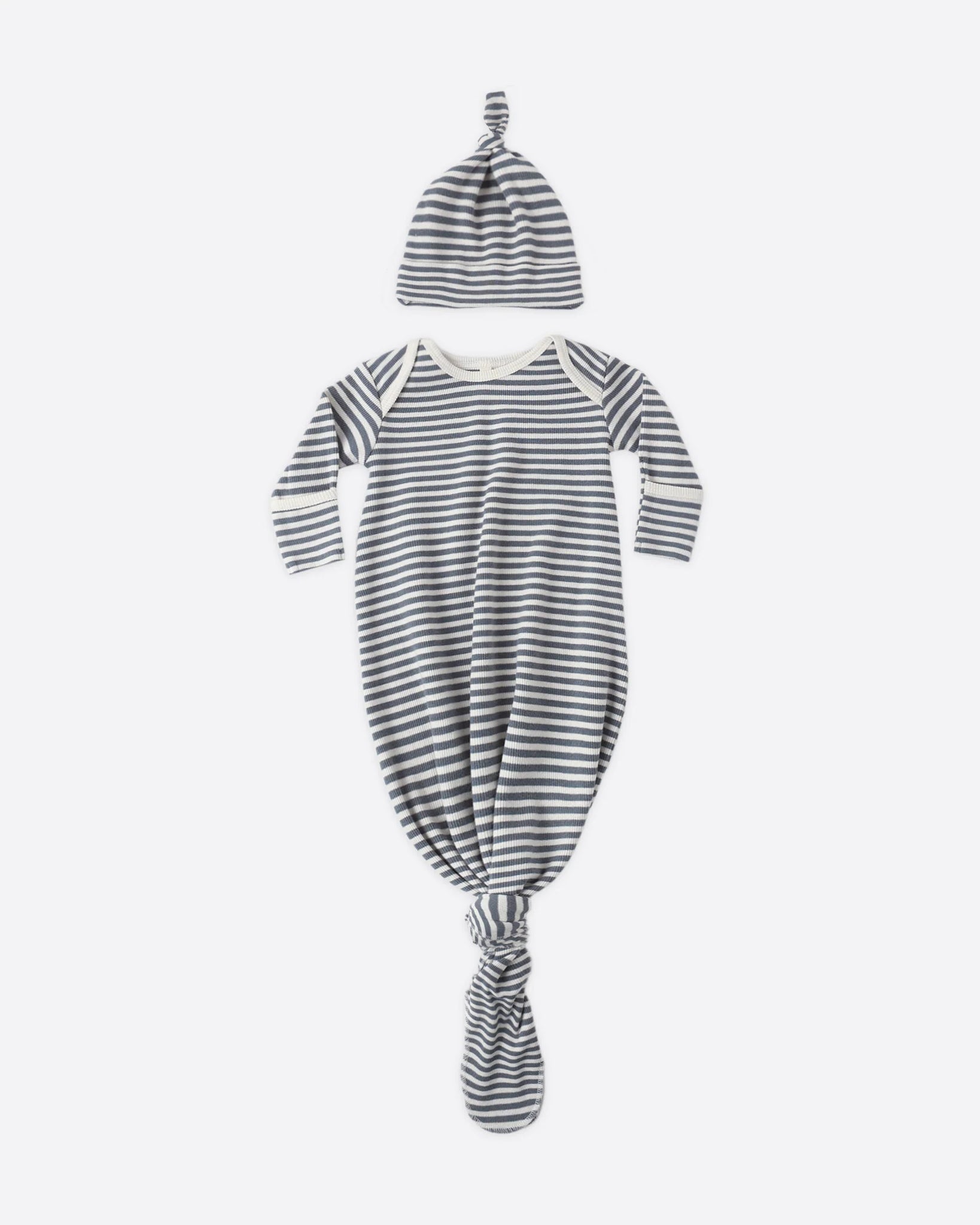 KNOTTED BABY GOWN + HAT SET || OCEAN STRIPE