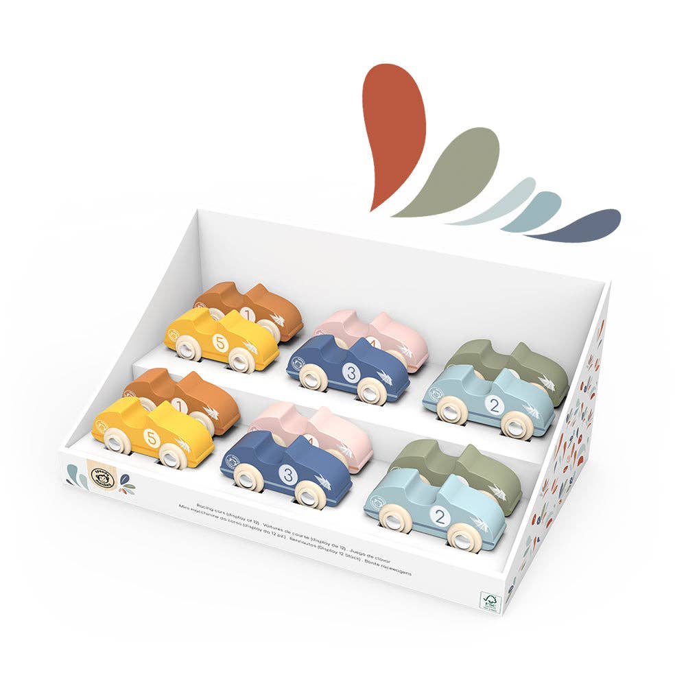 Introducing Racing Cars display! Get ready to race into fun with the Racing Cars Display, a vibrant set of wooden cars built for speed, imagination, and hands-on play! Perfect for toddlers 12 months and up, this colorful display features multiple racing vehicles designed to inspire endless trackside adventures and motor skill development. Whether it’s zooming across the floor or staging exciting races, kids will love the simple shapes and easy-to-grip design of these cars. The smooth wheels and durable build encourage active play, while helping develop fine motor skills, coordination, and creative thinking. Crafted from FSC-certified wood and painted with non-toxic, child-safe finishes, the set is safe for little racers and kind to the planet. Plus, it’s easy to clean, just wipe with a damp cloth! It comes in a 12 units display in 6 different colors. Specifications: Color: Multicolor Recommended Age: 12m+ Material: Wood FSC certified Size (inches): 13.7x8.4x4.