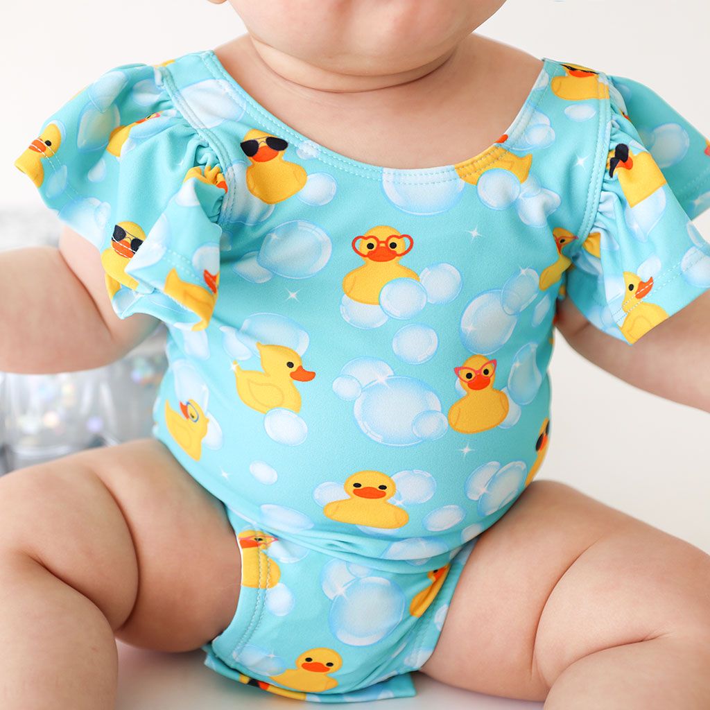 Ducky - One Piece Basic Ruffled Capsleeve Swimsuit