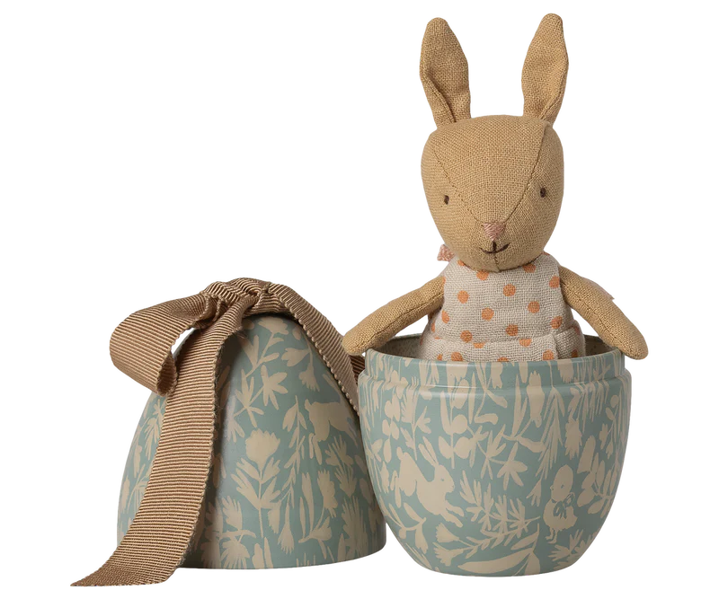 Easter Egg with Micro Rabbit, Small - Dusty Blue