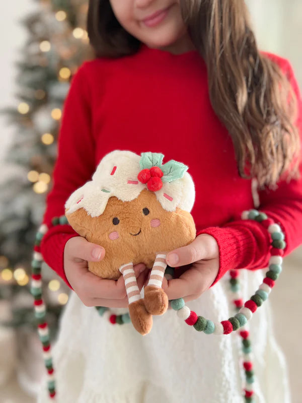 This Holiday Frosted Star Cookie is here, sugar-free but full of sweetness! The Star Cookie plush is the ultimate holiday treat that won't crumble. With its fluffy faux fur 'frosting' topped with sprinkles, and an adorable holly berry, it's as festive as can be. Rosy cheeks and a happy smile bring instant holiday cheer, while its dangling striped legs add a whimsical touch. Perfect for decorating, cuddling, or a caring gift for the star in your life this Holiday season.