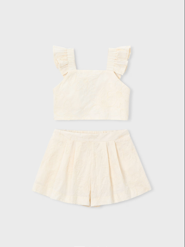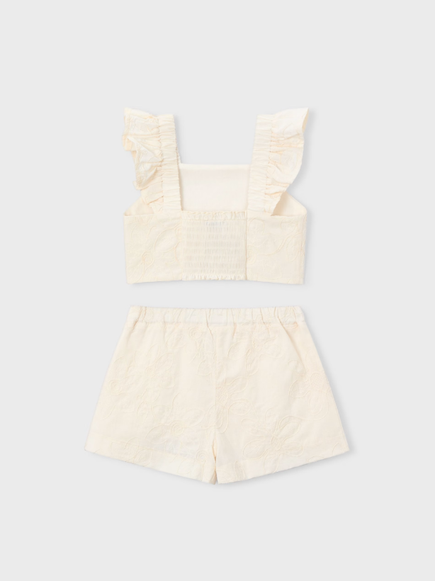 Natural Ruffle Embriodered Outfit Set