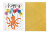 This octopus sure knows how to party! A card full of color and confetti, perfect for kids, ocean-lovers, or any colorful friends and family!