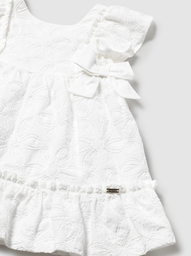 White Embroidered Bow Dress